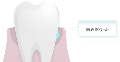 歯周病になると、歯と歯肉の間にできた歯周ポケットが徐々に深くなり、
